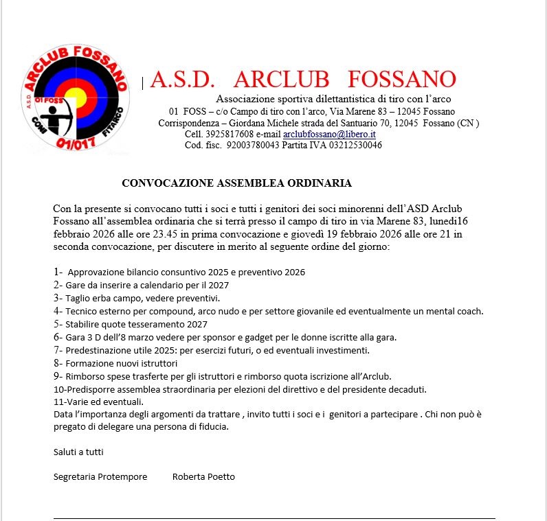 Nell’ultimo evento Federale del 2025 svoltosi nel weekend presso il palazzetto dello sport di Latisana (UD) organizzato dagli Arcieri Curtis Vadis, l’Arclub Fossano grazie alle frecce di Lorenzo Bertero, Giovanni Streri, Nicolò Bertero, Federico Viglietta, Rebecca Manno, Beatrice Streri, Chiara Conte e ai tecnici Roberta Poetto e Michele Giordana, dopo la vittoria ottenuta lo scorso anno a Belluno, sono riusciti a conquistare anche quest’anno la finalissima della Coppa Italia Centri Giovanili 2025. Al termine delle quattro volèe di finale hanno conquistato un meritatissimo secondo posto, dietro solo agli atleti della Maremmana Arcieri.
