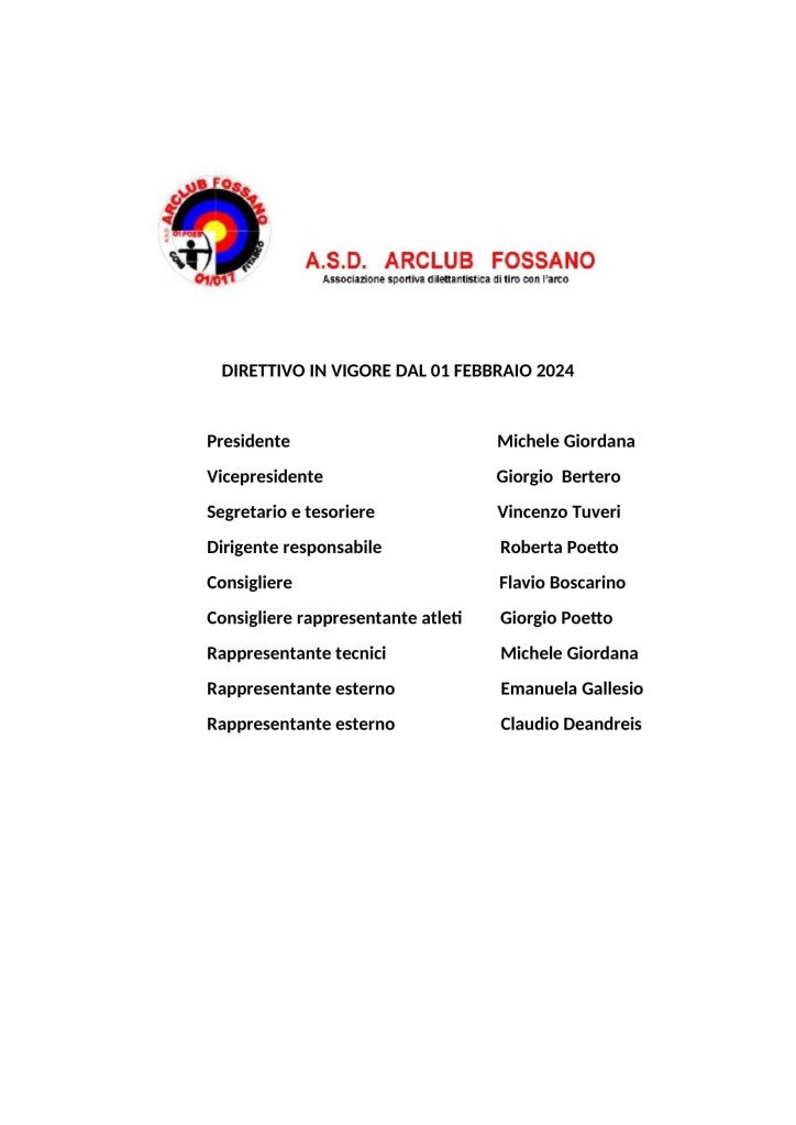 A.S.D.ARCLUB FOSSANO, associazione sportiva arcieri , punto di riferimento per il tiro con l'arco della provincia di cuneo.
